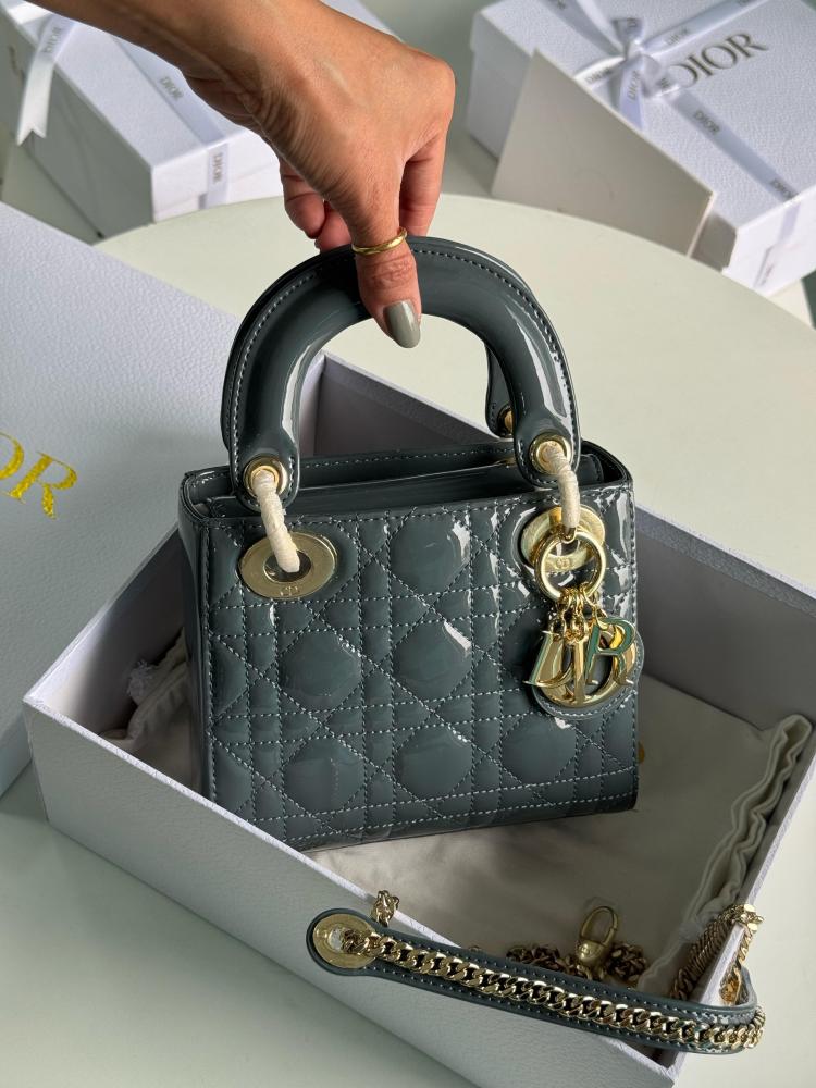 Lady Dior 17cm Shiny Bag for Women in Dark Olive