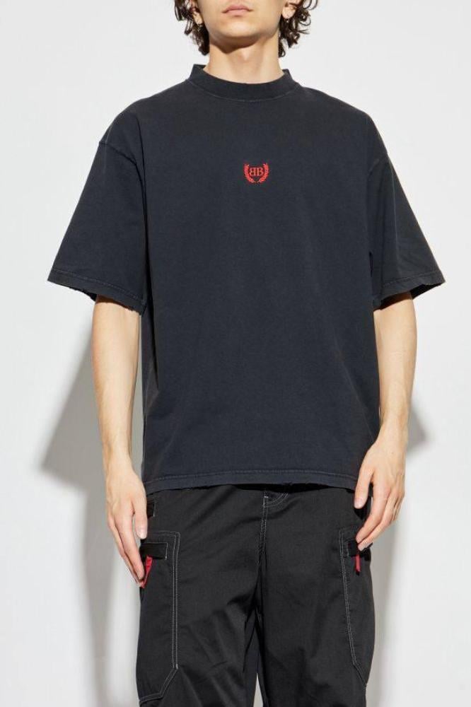 Balenciaga Men's Black Cotton T-Shirt with Embroidered Logo