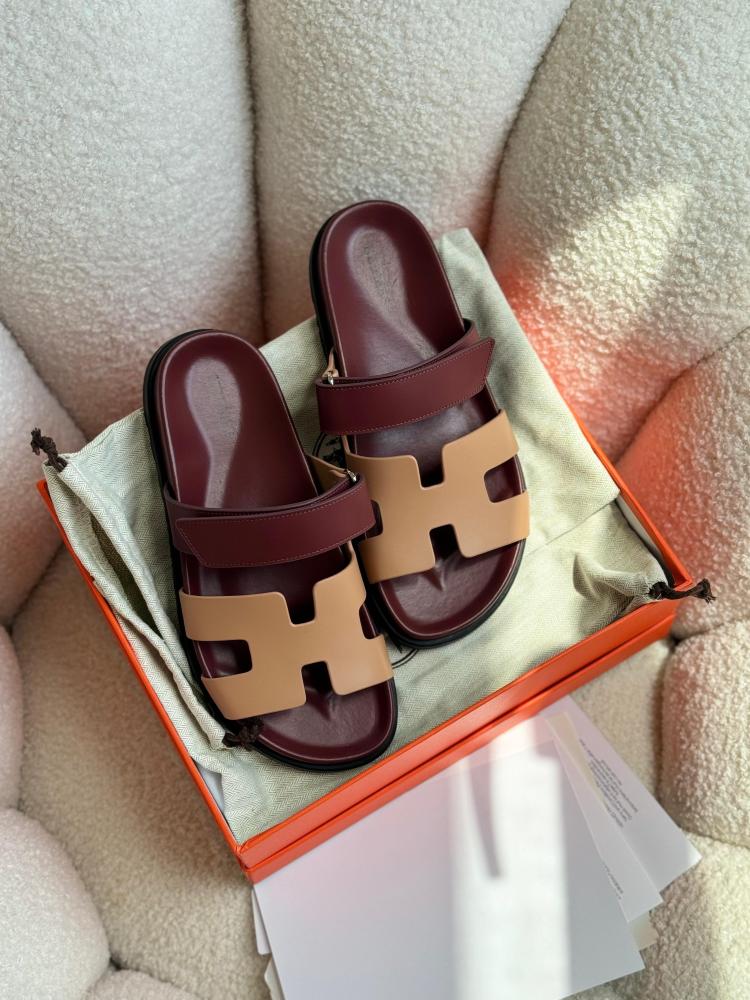 Women's open flat sandal in burgundy and beige, an elegant design that combines warmth and delicacy in a charming color combination that suits all your daily looks.