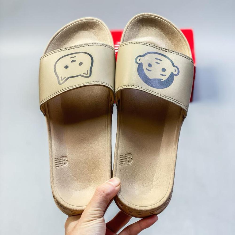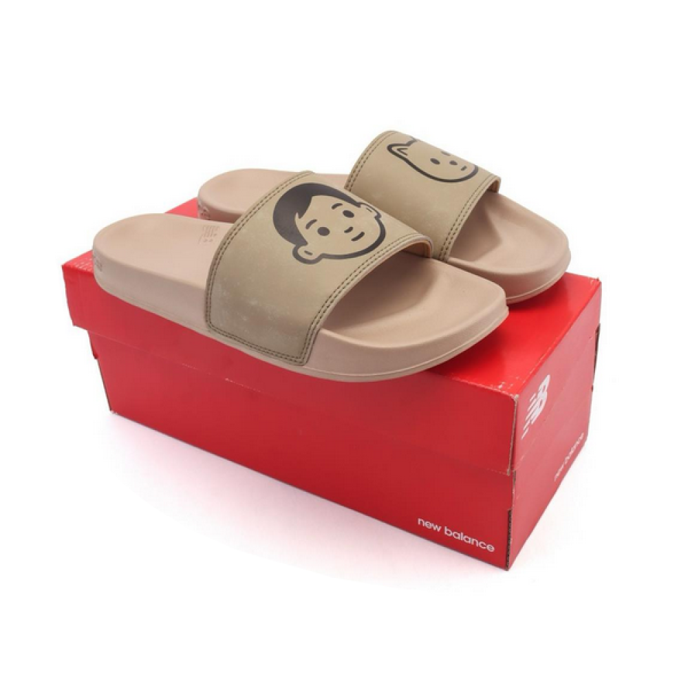 New Balance Men's Club Slipper in Brown with a Unique Dog and Child Print Design