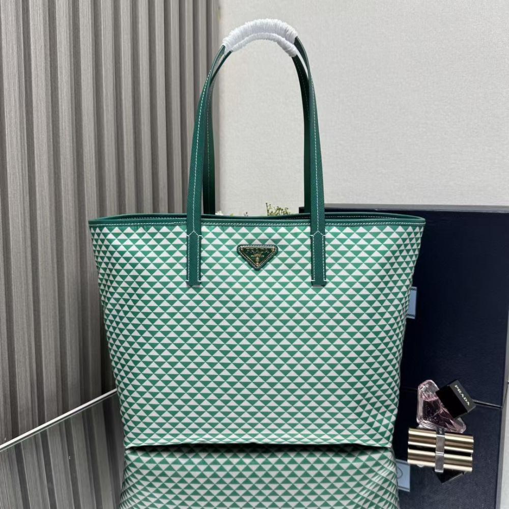 Elevate your work look with this Prada Re-Nylon bag in an attractive green color and the brand's distinctive logo, a design that combines sustainability with modern elegance.