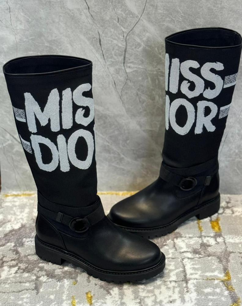 Dior's Miss Dior women's high-top boot in luxurious black leather is the epitome of elegance and sophistication. Designed to give you an attractive look that reflects the distinction and craftsmanship for which Dior is renowned, its modern and practical design makes it an essential piece that adds a touch of luxury to your look.