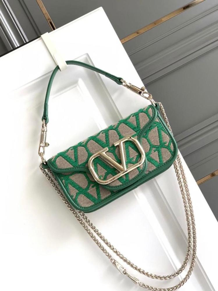 Girls, check out this fabulous bag from Valentino! 💚 This eye-catching green shoulder bag features the luxurious V logo, adding a touch of elegance and sophistication. The silver chain completes the modern touch and adds a special sparkle to all your looks.