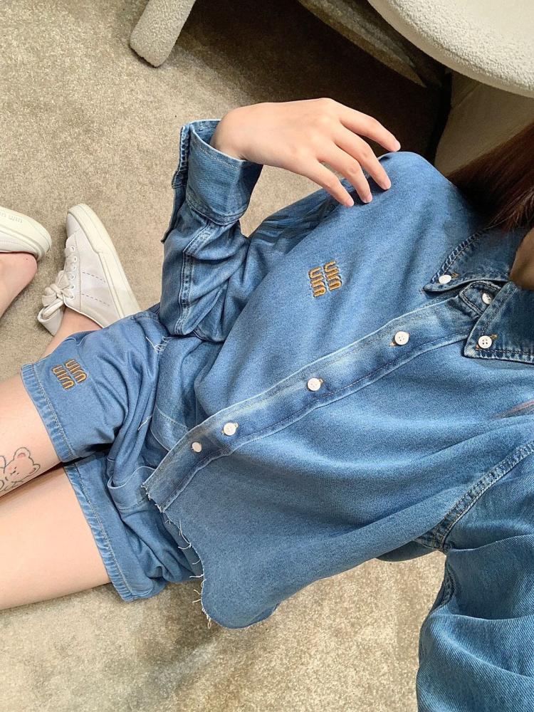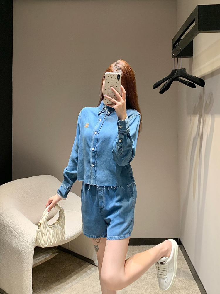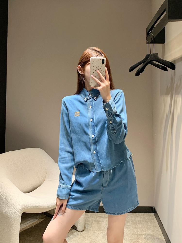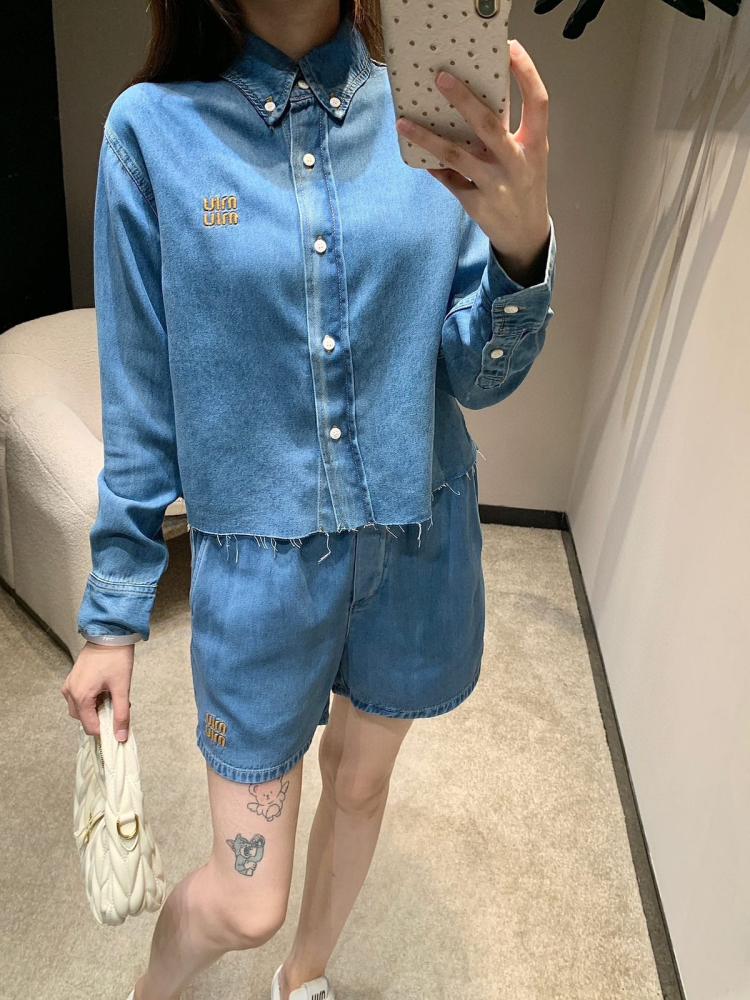 Enjoy a modern and comfortable look with this stunning women's set from the renowned Miu Miu brand. The set consists of stylish shorts and a matching shirt made from soft, high-quality denim, giving you a sense of comfort and elegance at the same time.