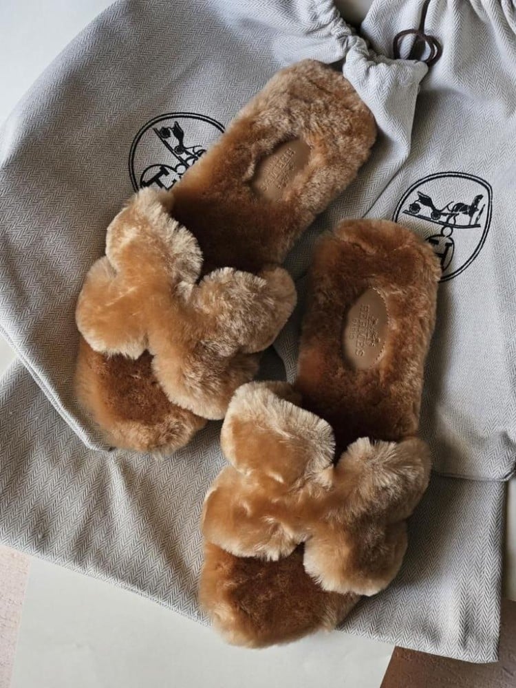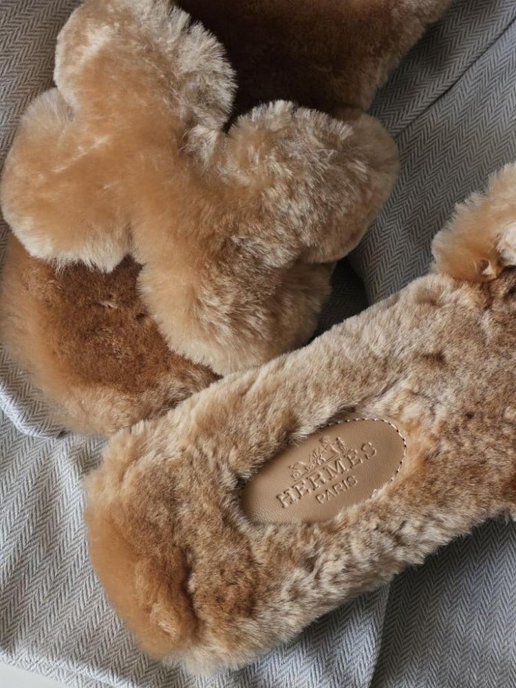 With its warm color and elegant design, the Hermès Winter Fur Slipper in Honey is an ideal choice for women who want to combine elegance and warmth in their look. This luxurious shoe can complete your look with a touch of sparkle and luxury.