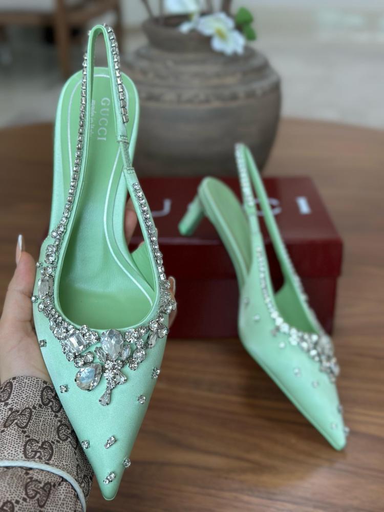 Gucci green crystal-embellished closed-toe mid-heel sandal