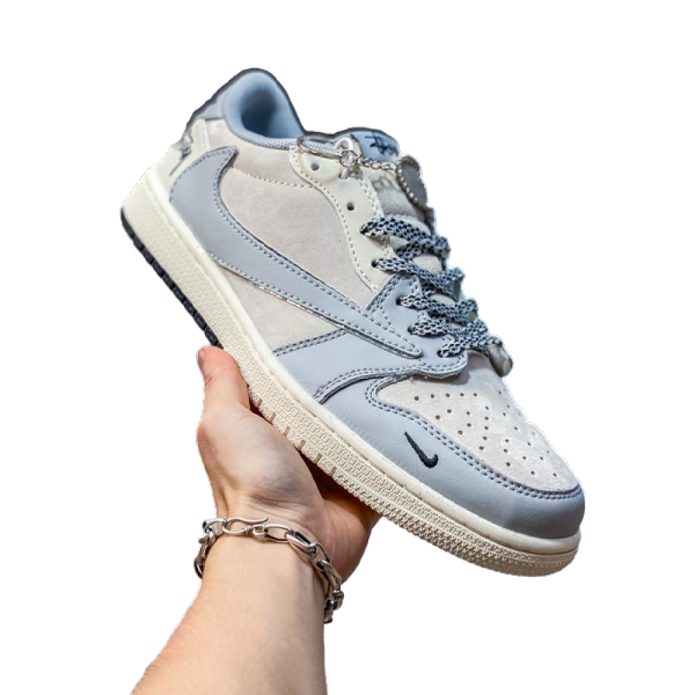 Air Jordan 1 x Travis Scott Grey Ivory Velvet Shoes