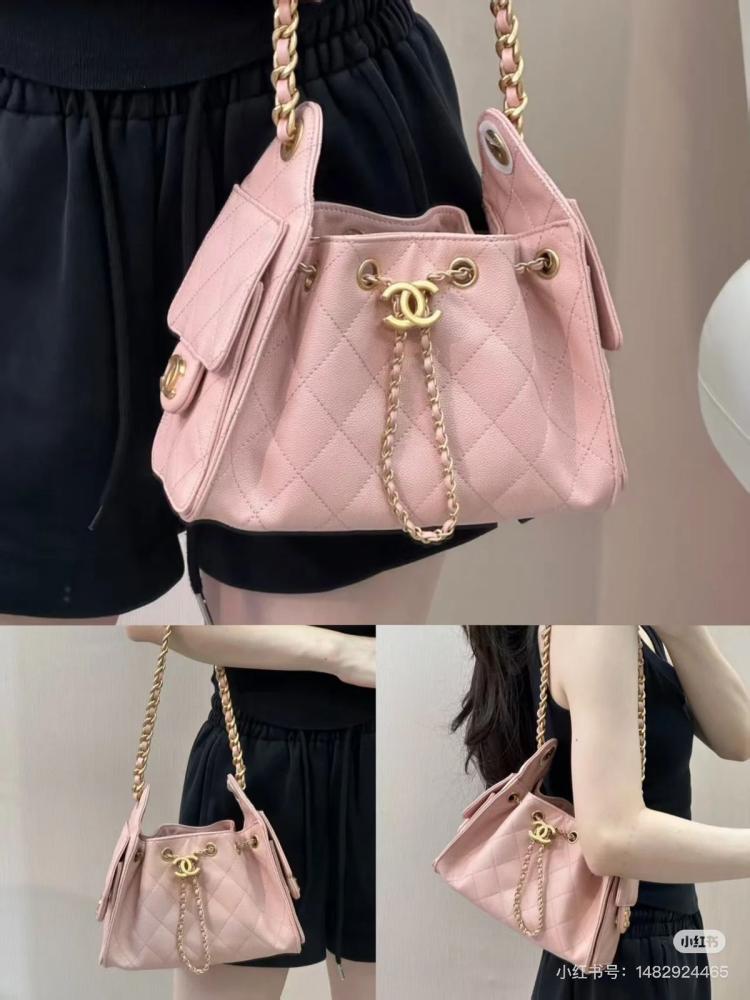 Chanel 25 Medium Women's Bag 22cm Pink with Gold Chain