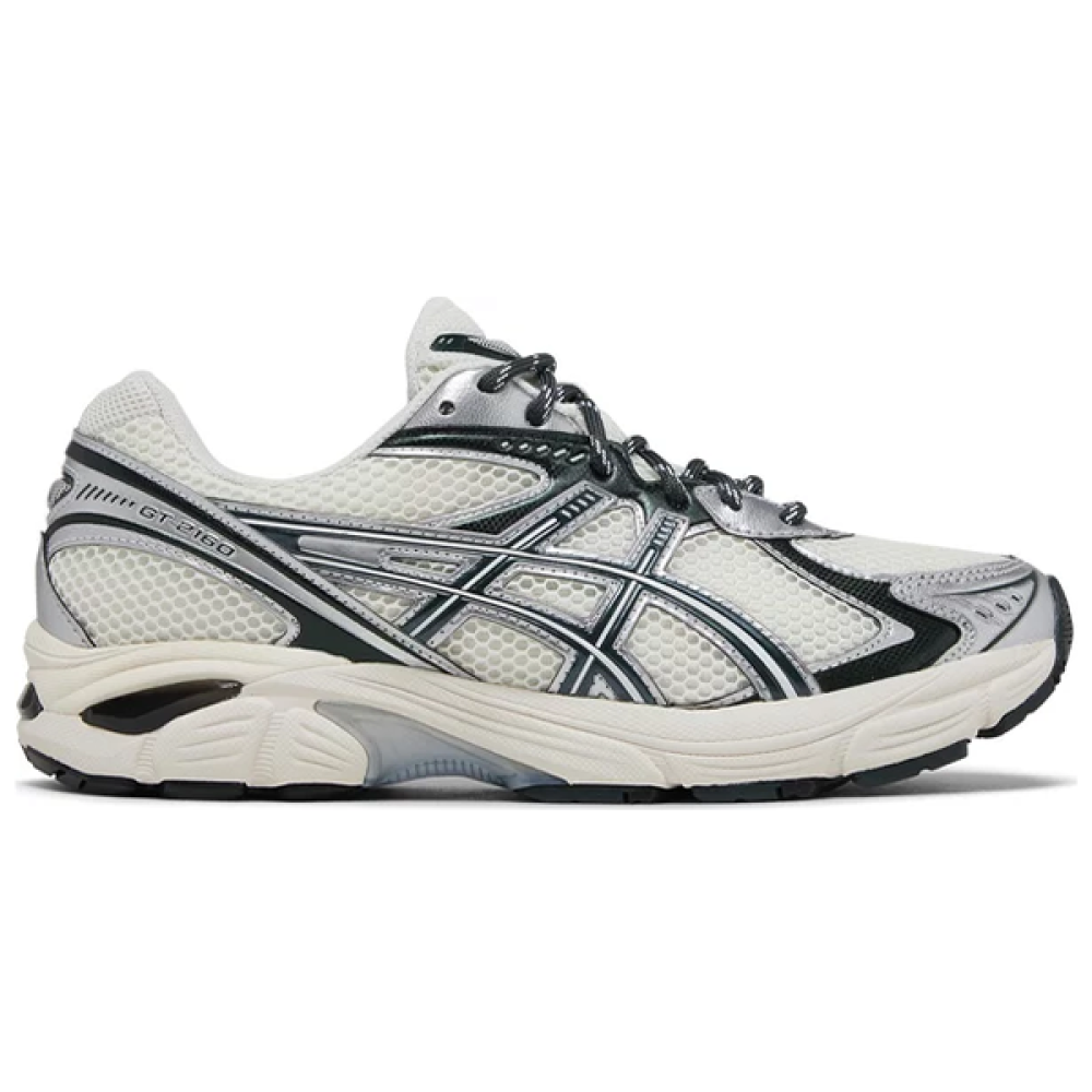 Enjoy a touch of nostalgia with the Keith x ASICS GT 2160 , a blend of classic running style and modern elegance. Inspired by the iconic GT-2000 design, this shoe comes in a cream colorway with silver and black accents, reflecting a bold and stylish style. It features a cream open mesh upper with synthetic scarab overlays in an eye-catching metallic finish.