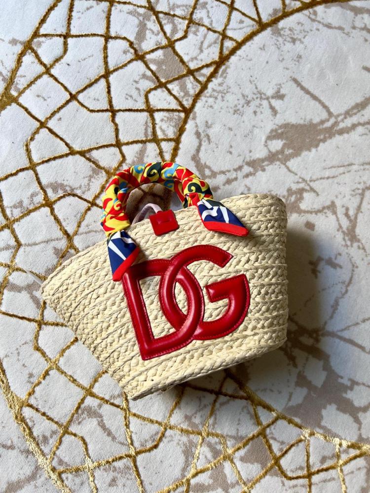 This bag features a unique design crafted from natural straw, with a touch of luxurious elegance through the red Dolce & Gabbana logo.