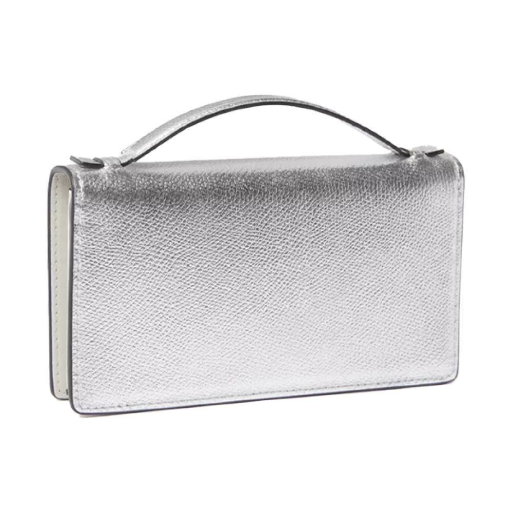 Valentino small 20cm bag in shiny silver with a shoulder chain