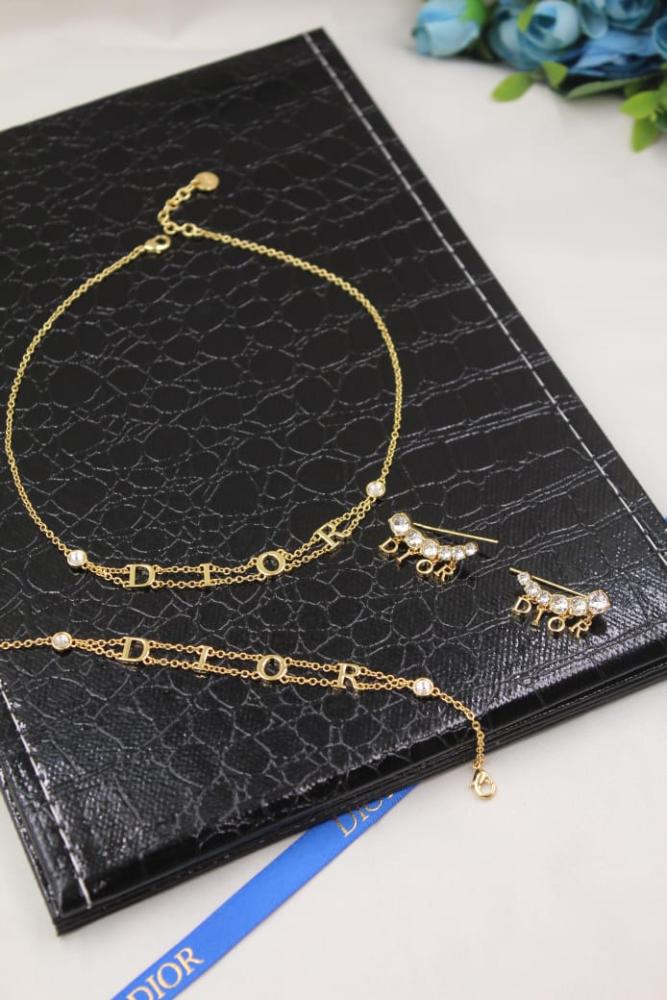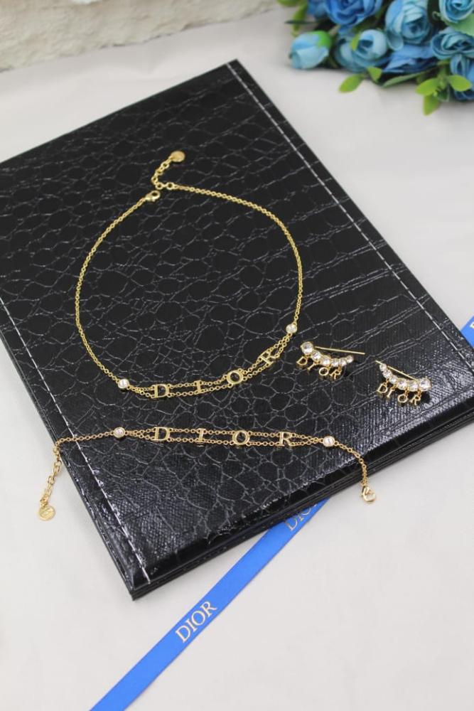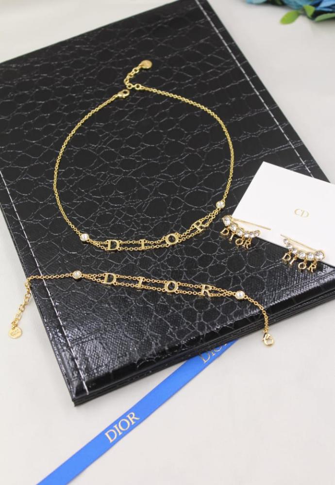 Dior Double Chain Accessory Set: Necklace, Earrings, and Bracelet, Gold Color