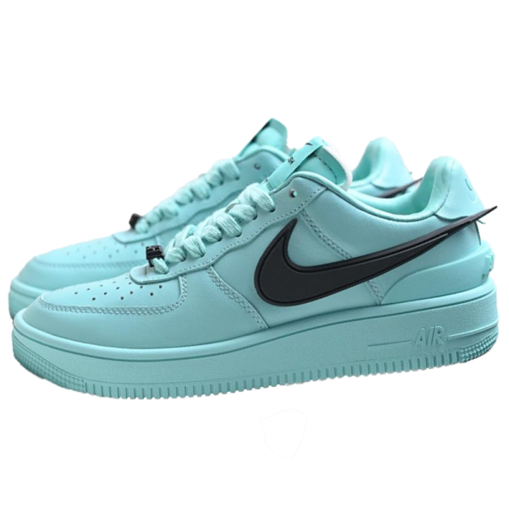 Enjoy style and comfort with the Ambush x Nike Air Force 1 Low in its distinctive Mint Blue colorway, designed for both genders.