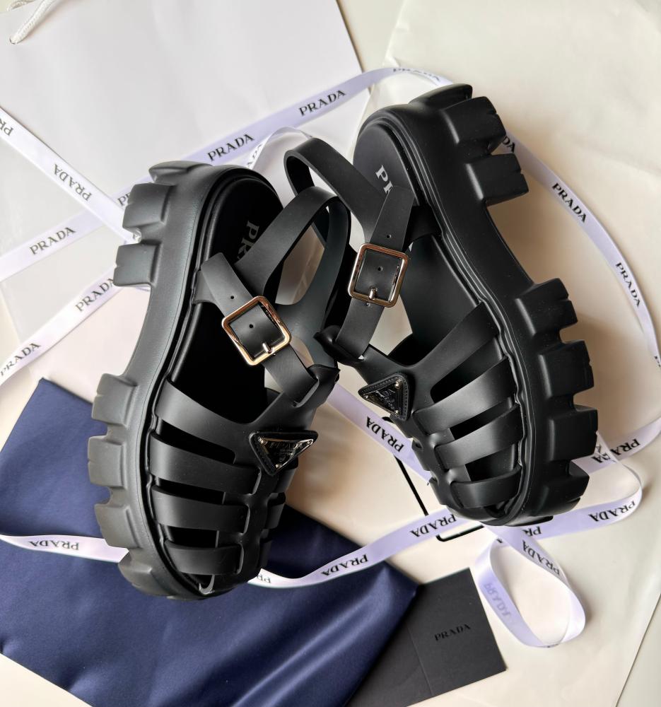 Prada Women's Black Comfortable Rubber Flat Sandal