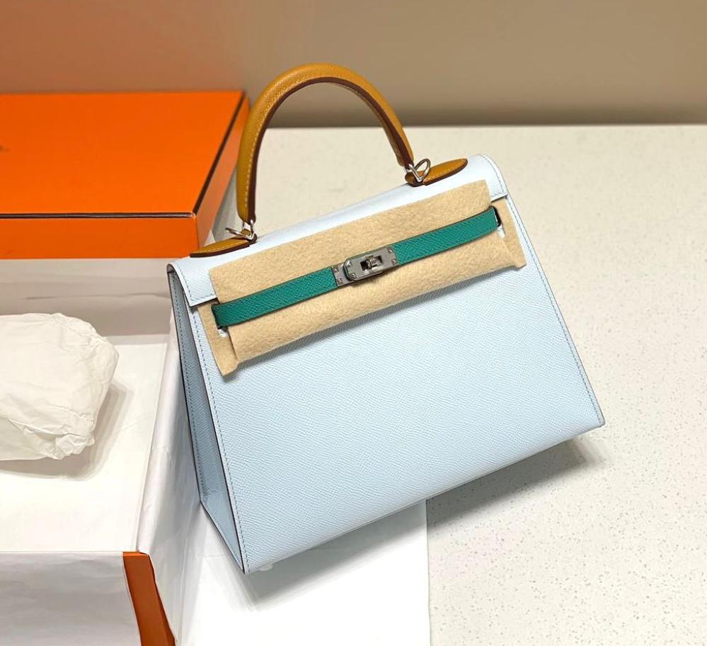 Hermes Kelly Women's Stylish Bag - Sky Blue with Top Handle