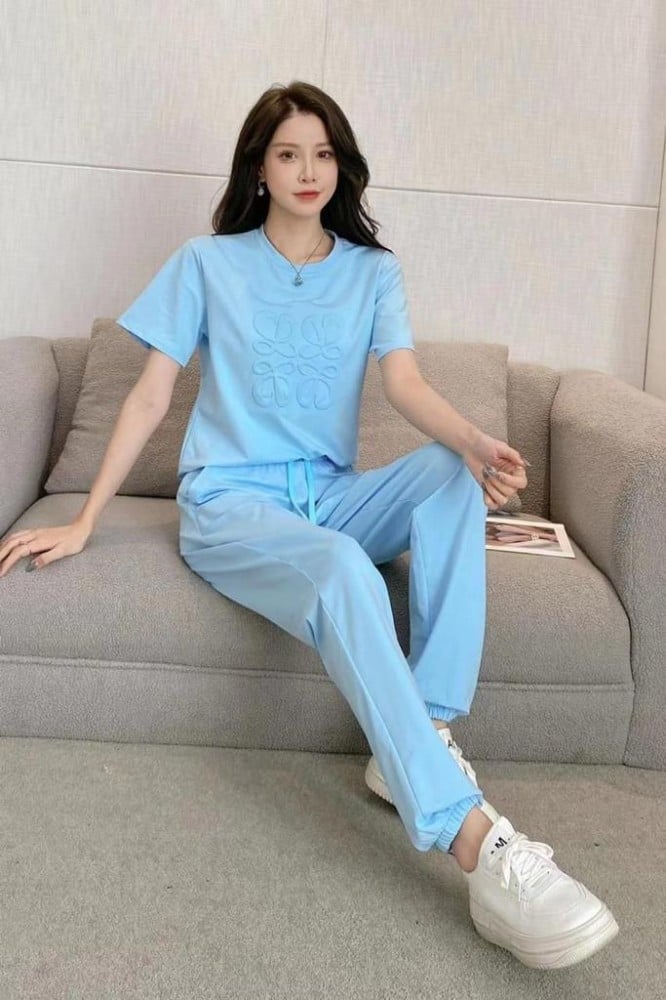 Discover comfort and elegance with this baby blue Loewe women's set. Featuring a modern design that combines elegance and simplicity, this set is the perfect choice for relaxing at home or casual get-togethers.