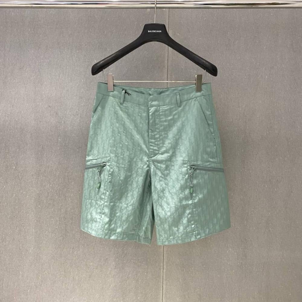 Dior Men's Green Oblique Print Sports Shorts with Zip Pockets