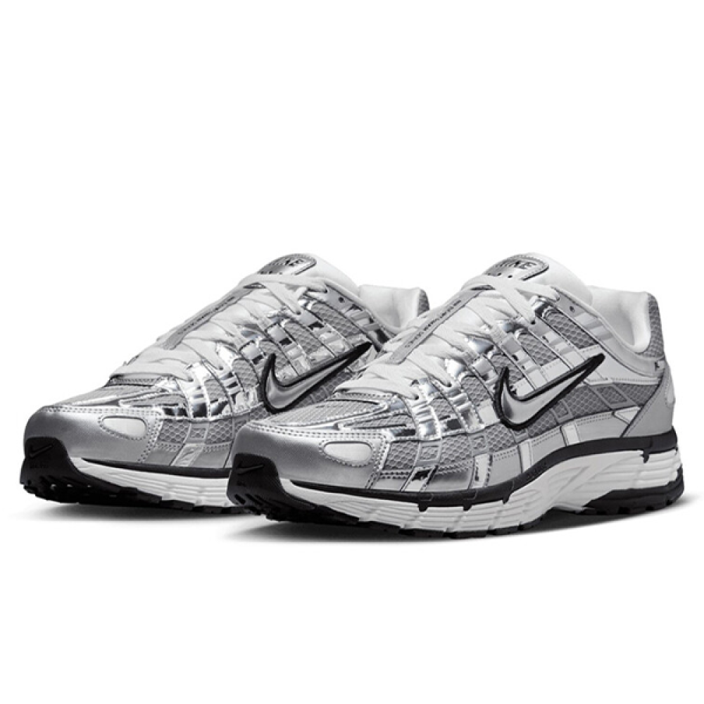 The Nike P-6000 Unisex Shoe in Silver Black combines modern athletic performance with distinctive street style.