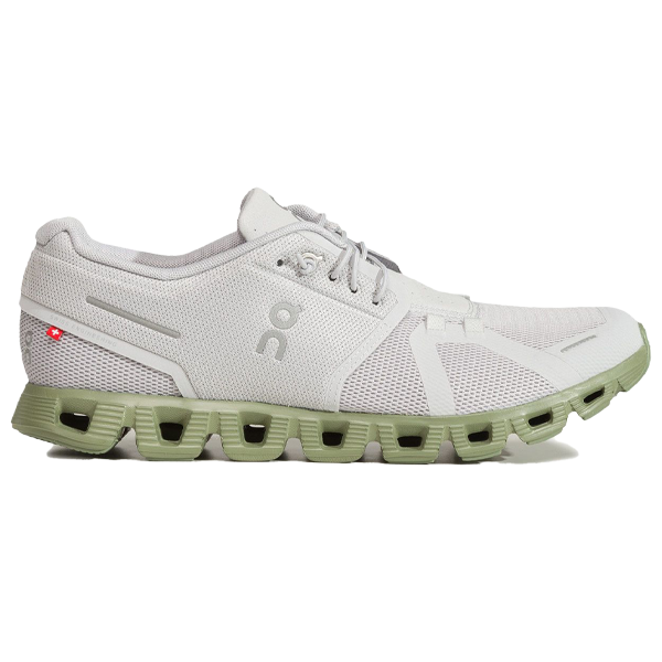 The CloudX men's white shoe with olive green accents combines style and comfort for a distinctive sporty experience.