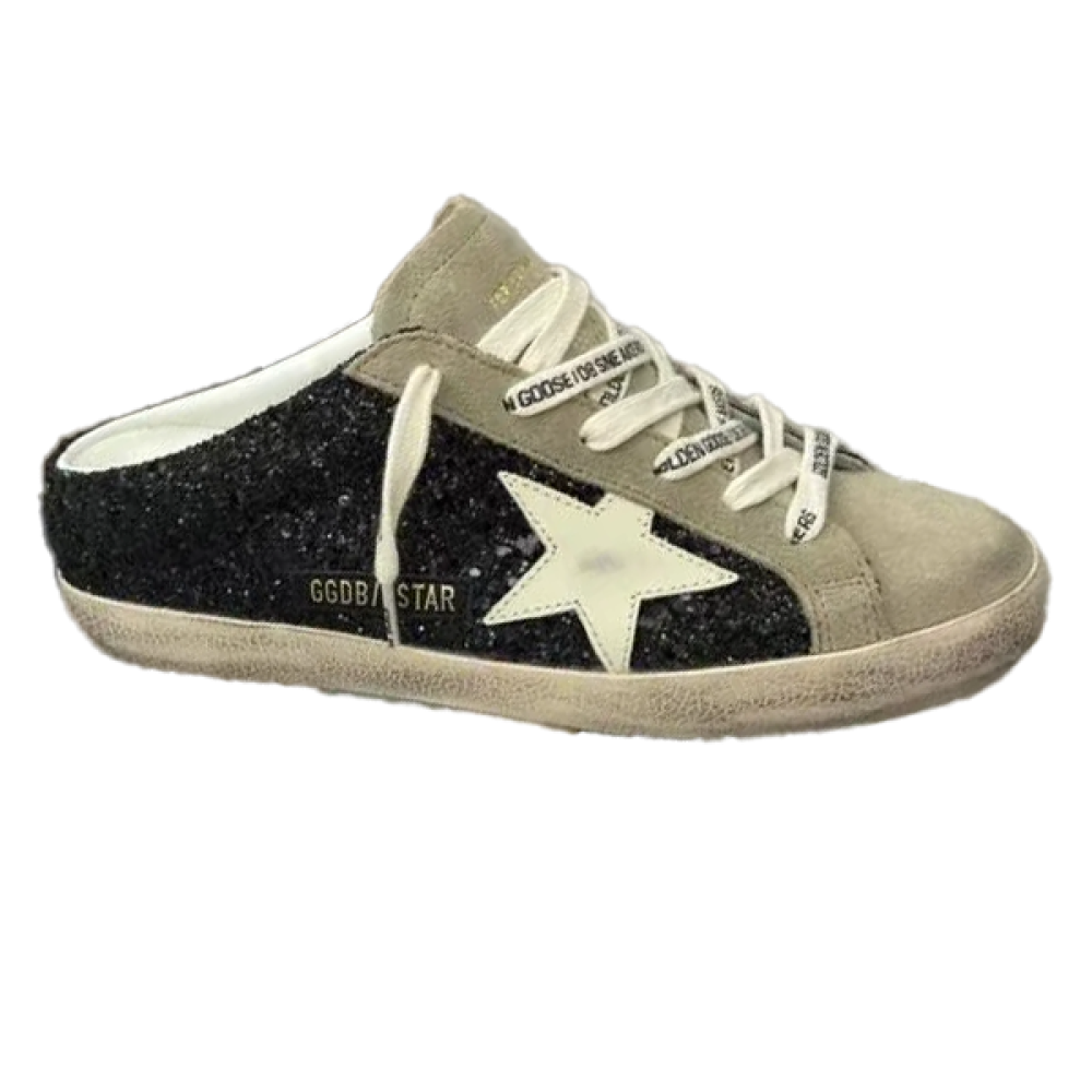 👟 Golden Goose Sabot Superstar Open Toe Slipper - Black & Brown Glitter