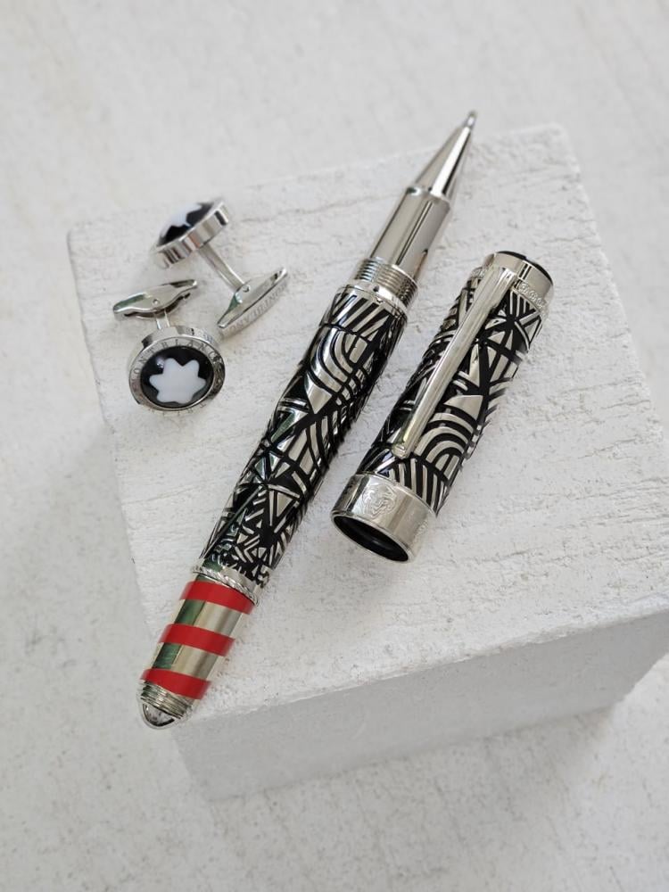 Montblanc Men's Gift Pen and Cufflinks in Silver, Black and Red Engraving