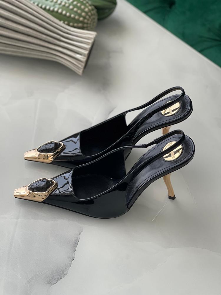 Black with elegant gold accents that highlight the beauty of the foot with femininity. The shoe is crafted from premium materials and features a comfortable sole that provides optimal stability.