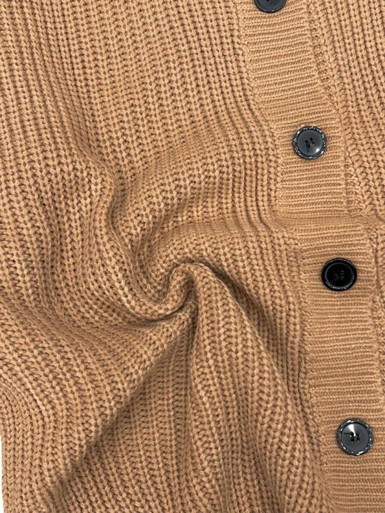 Suggested styling: Wear it over a beige or ivory midi dress for a soft look, or pair it with high-waisted jeans and leather boots for a sophisticated casual look. Add a small, dark-colored bag to highlight the cardigan's details.