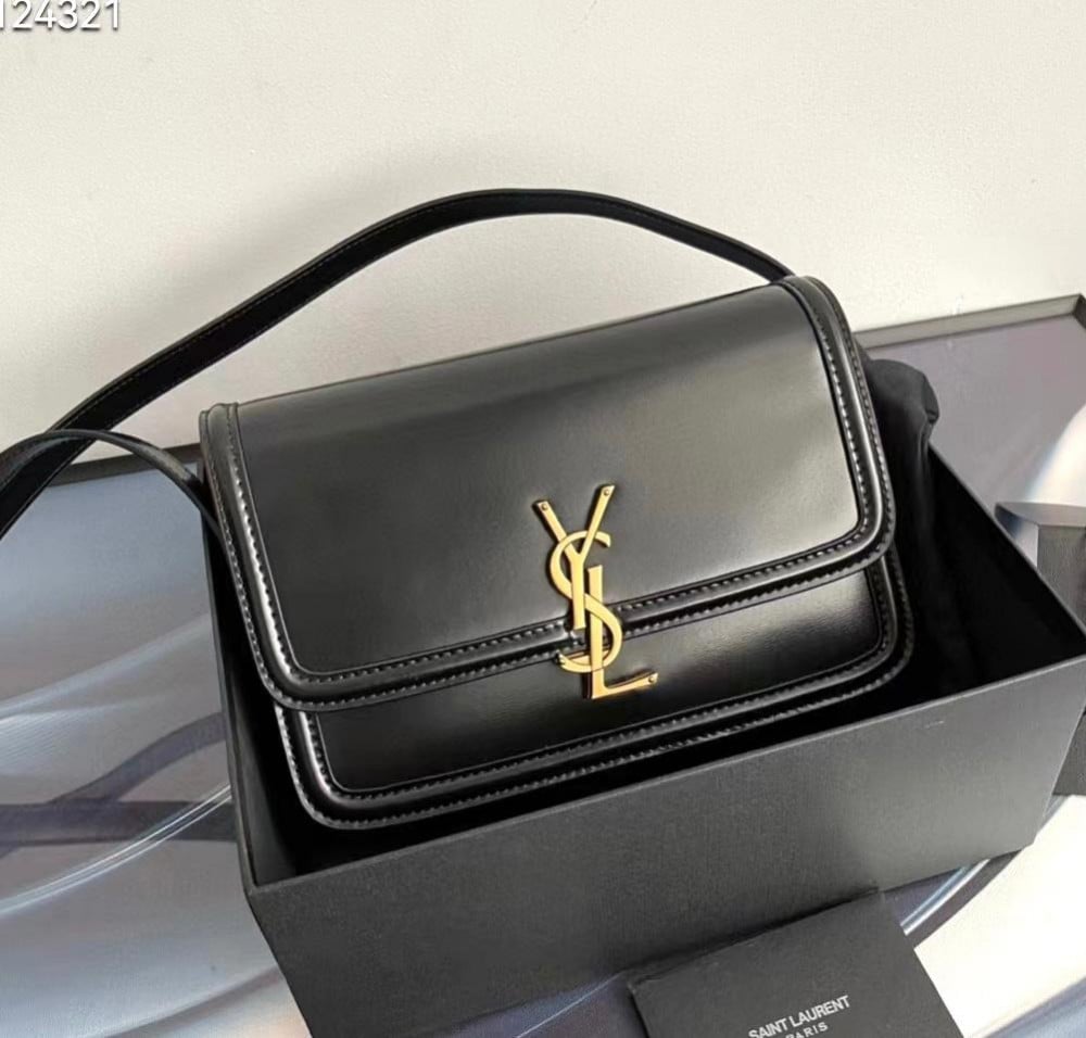 حقيبة يد جلدية من سان لوران سولفرينو لون أسود مع لوقو ذهبي