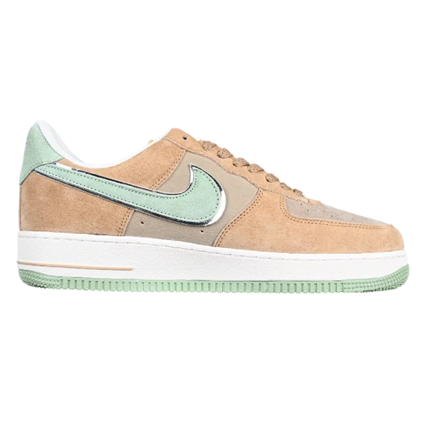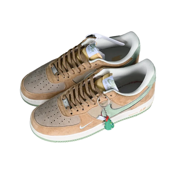 Don't miss your chance to own this festive sneaker. Get the Nike Air Force 1 in light brown and green suede now!