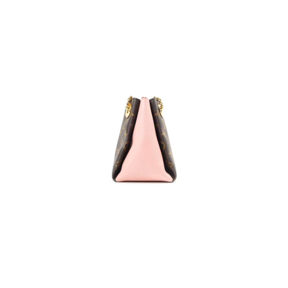 حقيبة للسيدات لويس فيتون سورين بي بي باللون البني مع لمسات زهرية هي قطعة أنيقة وفريدة، تجمع بين الأناقة الكلاسيكية ولمسة جذابة من لويس فيتون