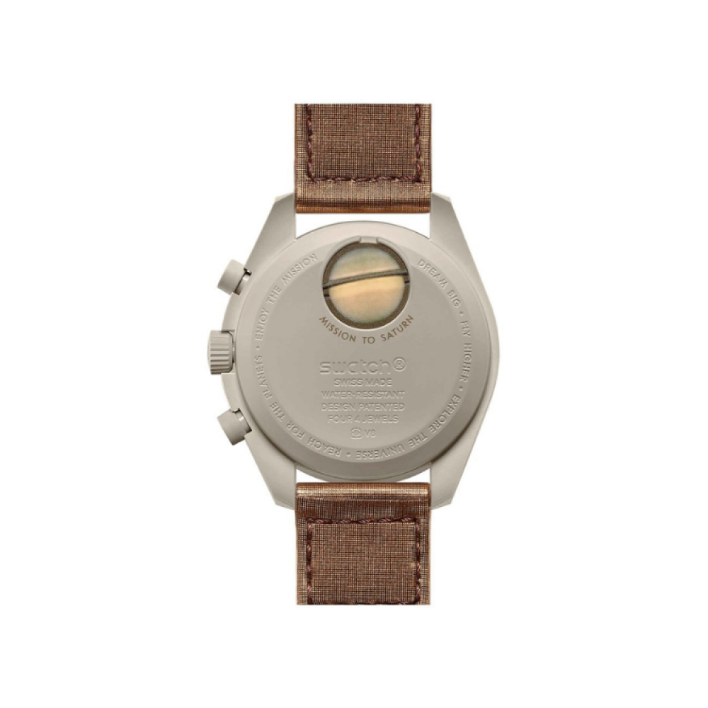 ساعة موون وتش من أوميغا سواتش، ساعة يد، مصنوعة بمواد عالية الجودة، سوار جلد بني، تصميم عملي يليق بإطلالاتكم المختلفة، ساعة فاخرة و مميزة، صممت لتناسب مختلف الأوقات.