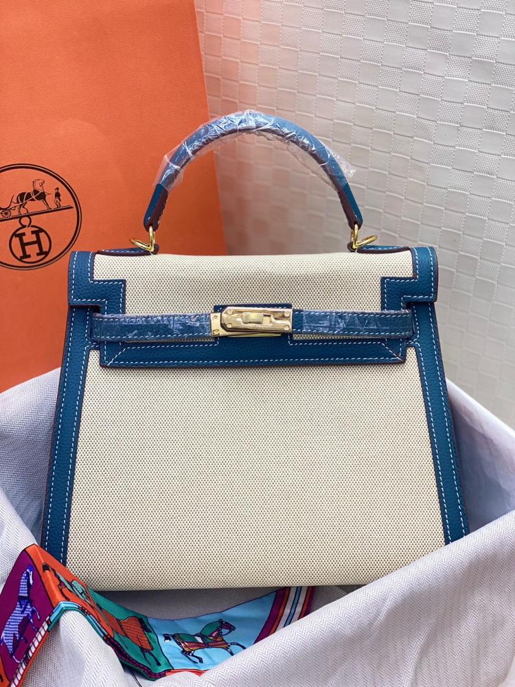 This bag comes in a dazzling blue color with sophisticated beige details, adding a touch of elegance and sophistication to any look. It features high-quality leather, fine detailing, and intricate stitching, embodying the fine craftsmanship for which Hermès is renowned.