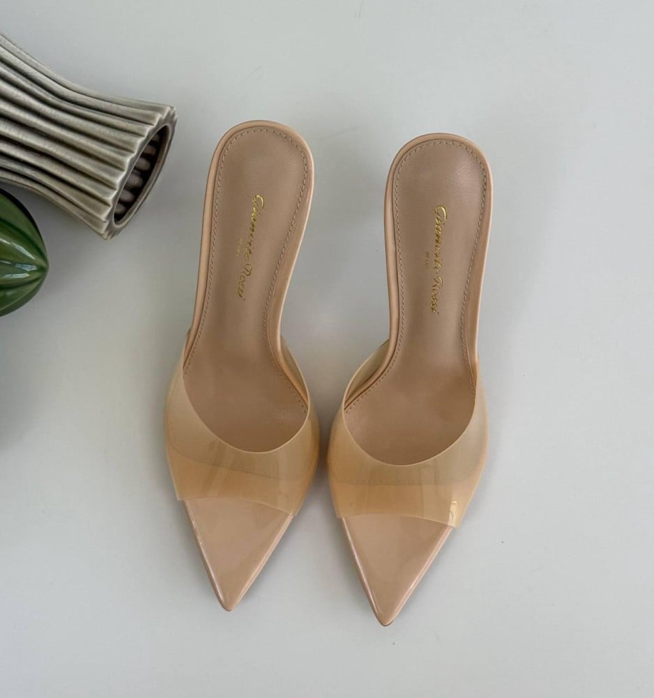 Giovantino Rossi's signature is elegantly displayed on the sole, enhancing the shoe's appeal. The Giovantino Rossi women's Plexi sandal in beige is the embodiment of luxury and elegance in every step.