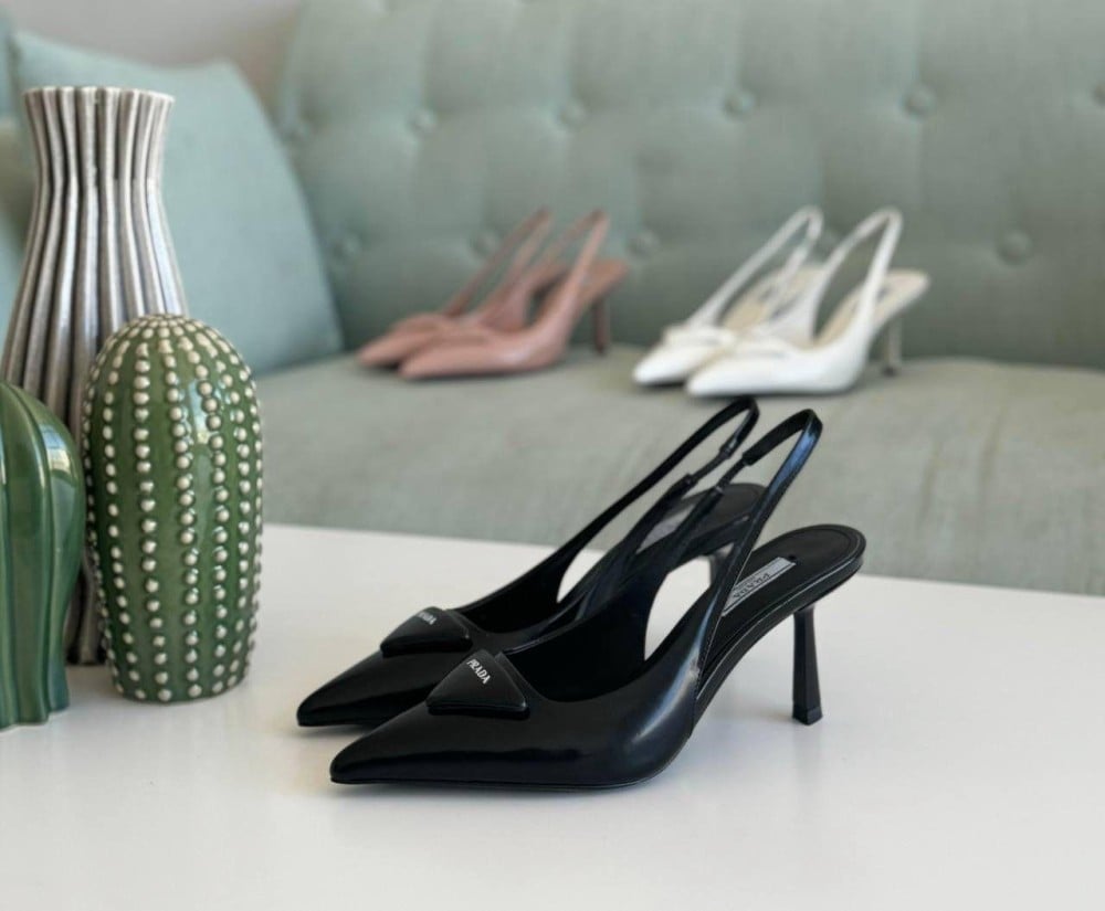Prada L'Homme Black Luxury Mid Heel Slingback Sandal