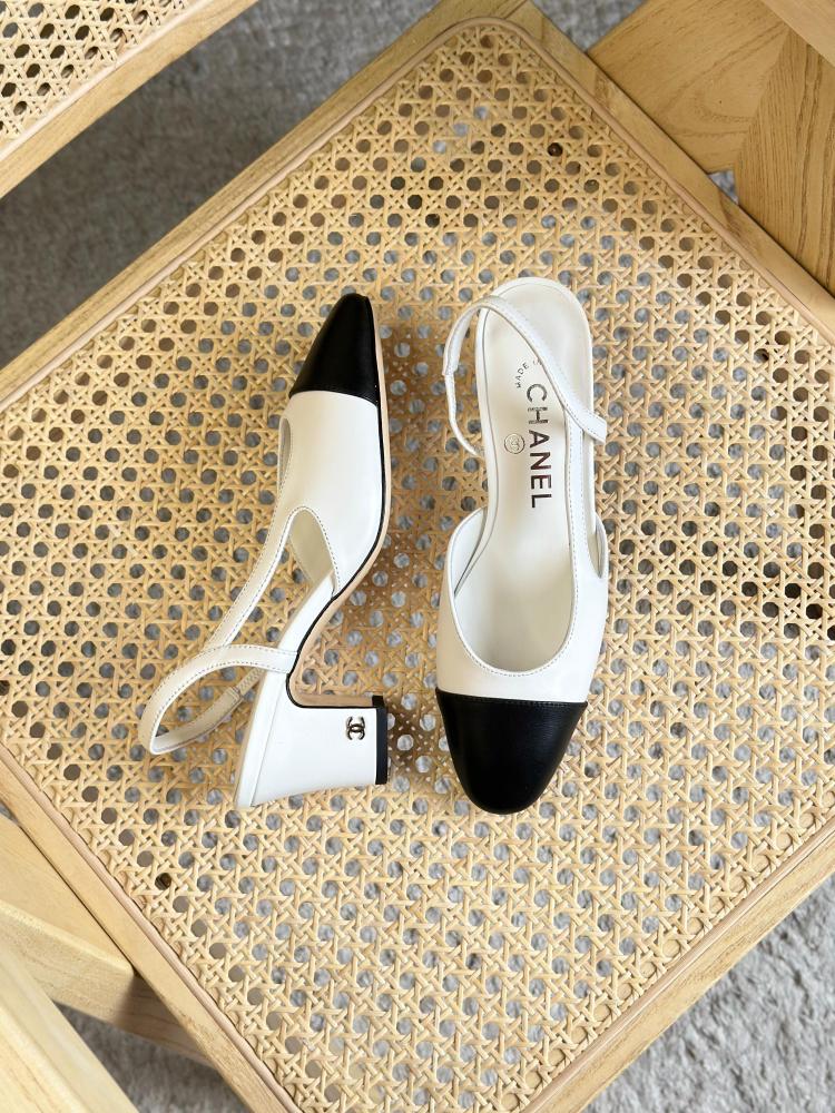 Chanel Women's Leather Slingback Sandal Comfortable Heel, White and Black