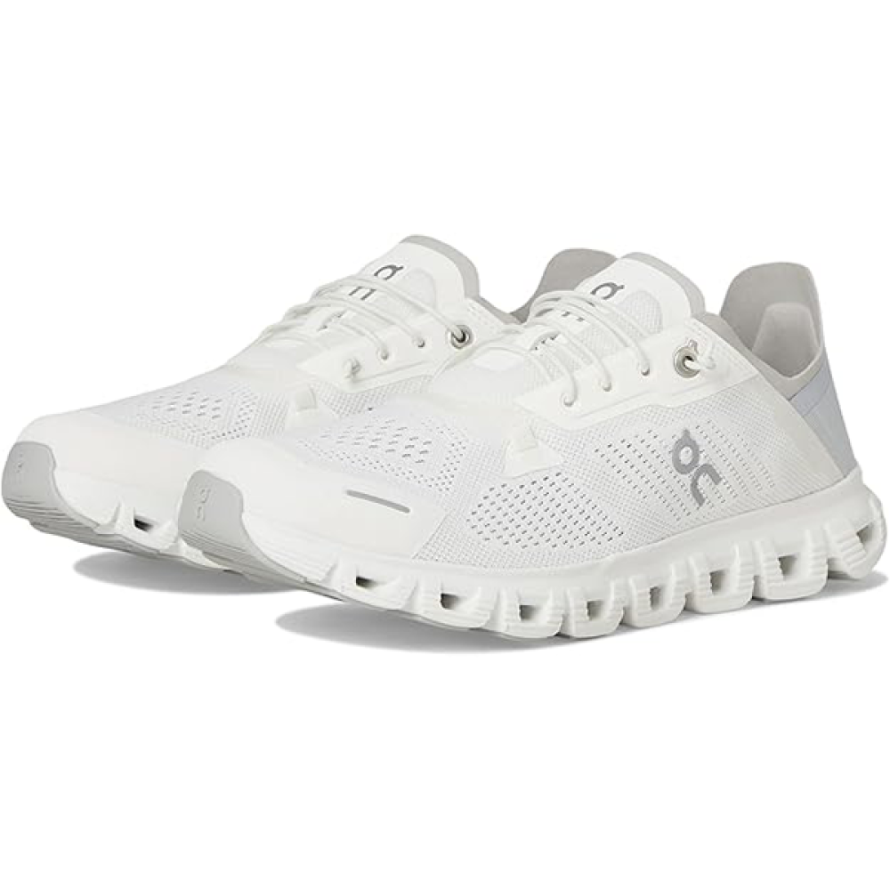 Stay light and comfortable with the On Running Cloud 6 White Elastic Lace-Up Sneaker.