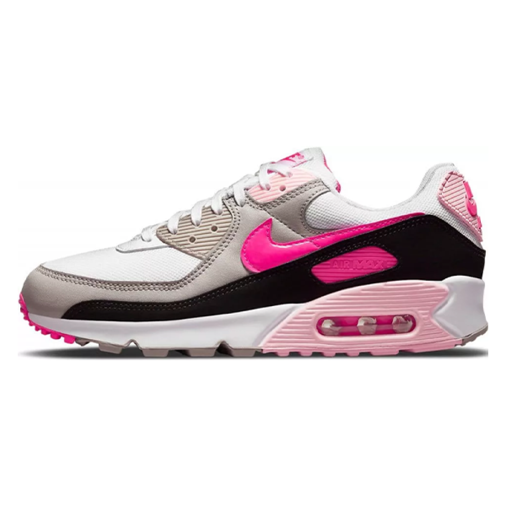 The Nike Air Max 90 unisex in gray and pink combines classic design with modern elegance.