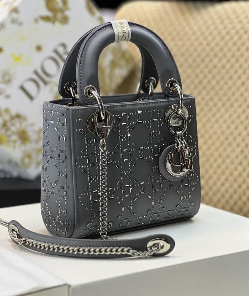 Dior Mini Lady Dior 17cm Bag with Rhinestones in Grey
