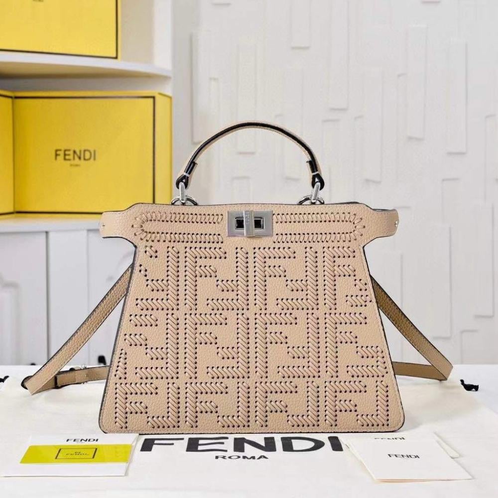 Fendi Peekaboo ECU 27cm FF Logo Beige Leather Bag