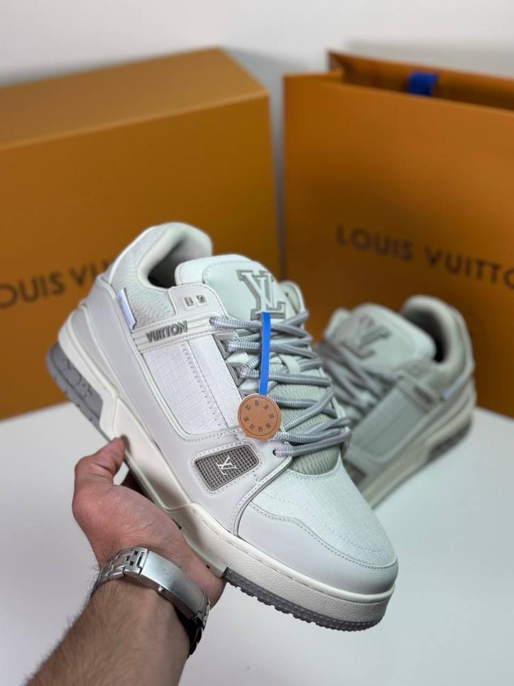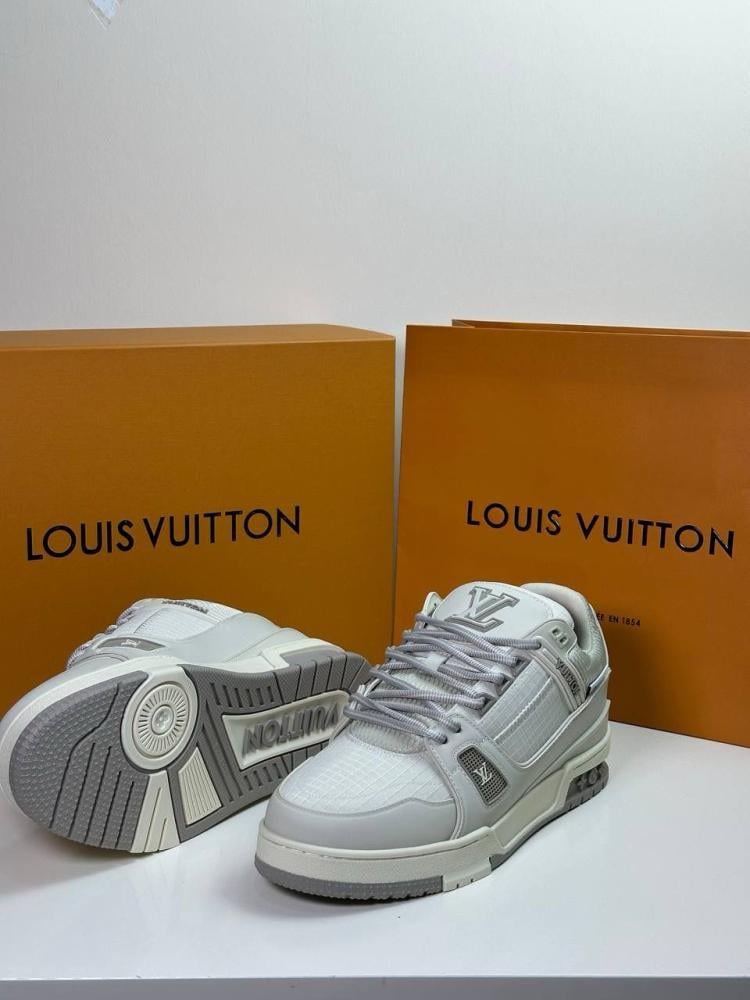 Whether you're looking to complete your look with a distinctive piece or looking for a luxurious gift, Louis Vuitton's gray LV Trainer shoes are the eye-catching choice that complements your elegance.