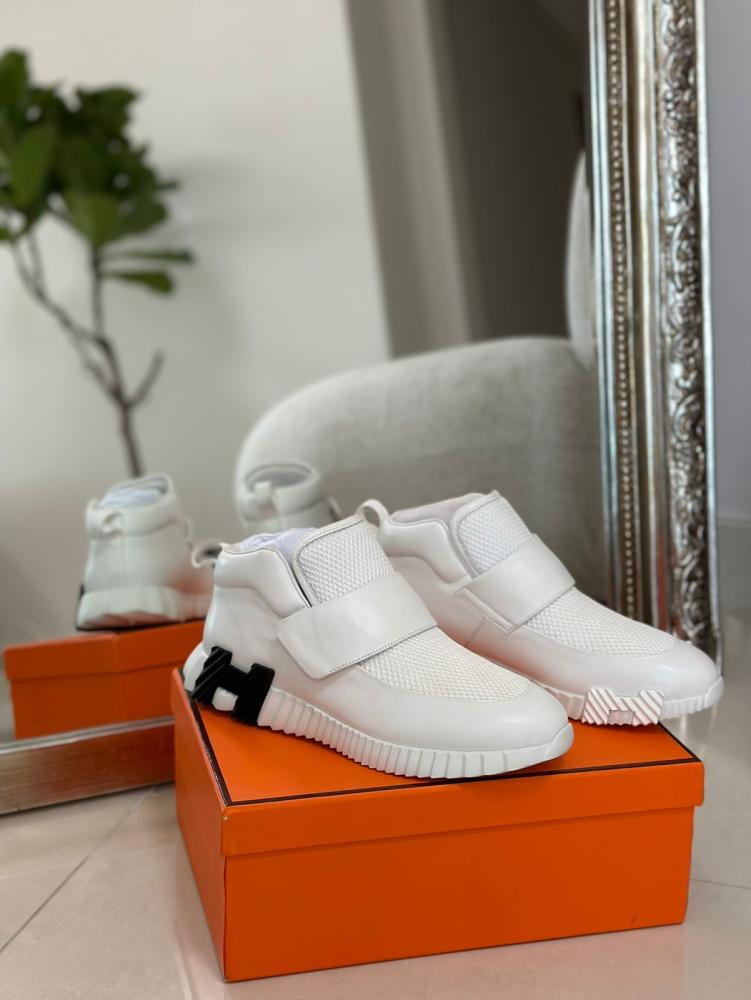 Hermes Men's H Sneakers High Top White Black Logo
