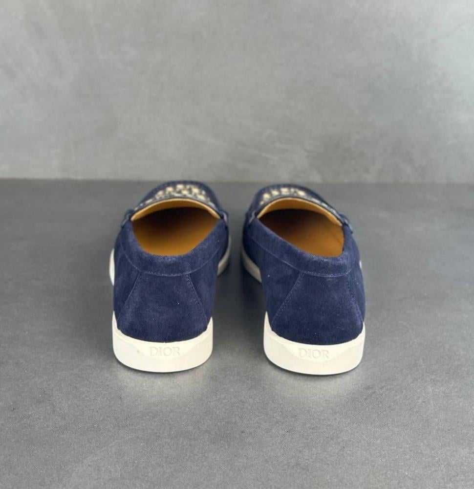 Welcome! Check out these Dior men's flats, the Black Loafers model in a sophisticated night blue. Crafted from premium leather, they boast an elegant design and unbeatable comfort. The upper is embellished with the brand's signature logo, giving you a touch of luxury and sophistication.