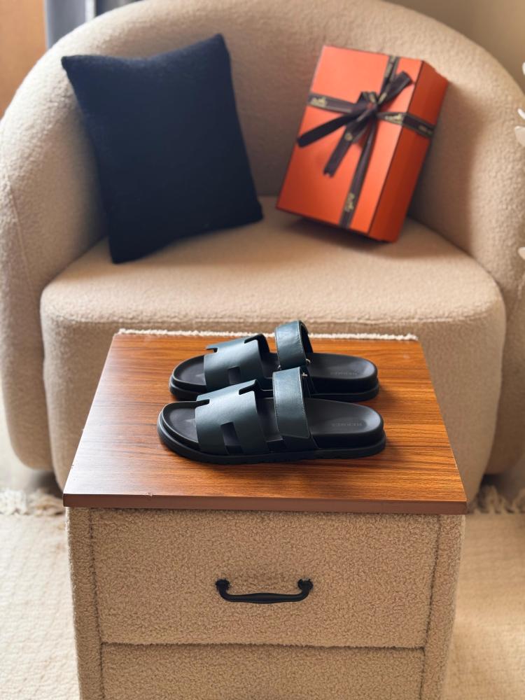Elevate your everyday look with these Hermes Shaper men's slippers crafted from soft, luxurious leather in a sleek navy hue. A design that exudes sophisticated simplicity and perfect comfort for every day.