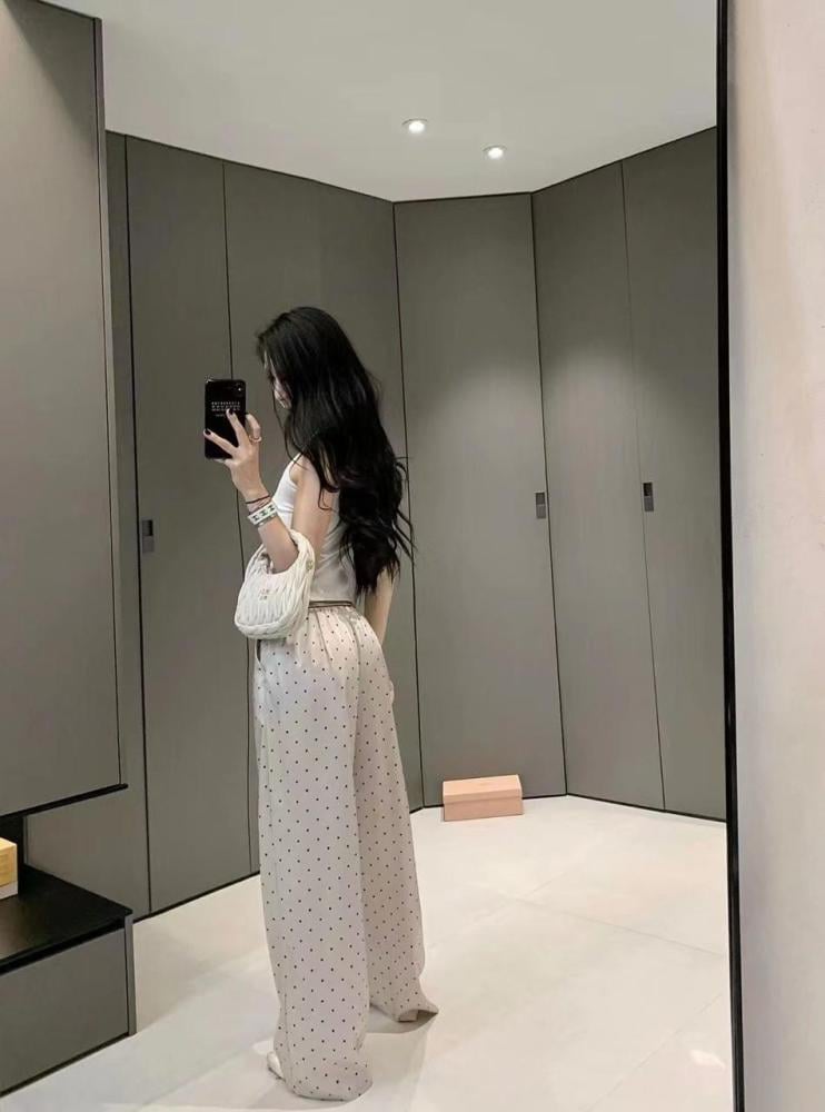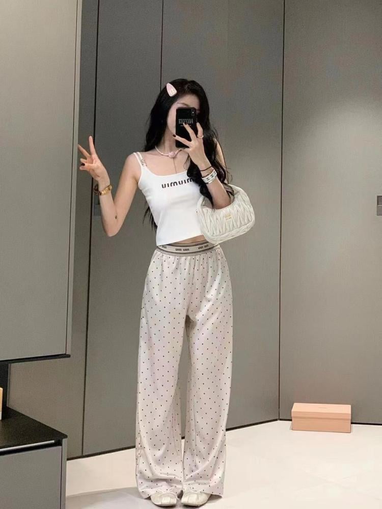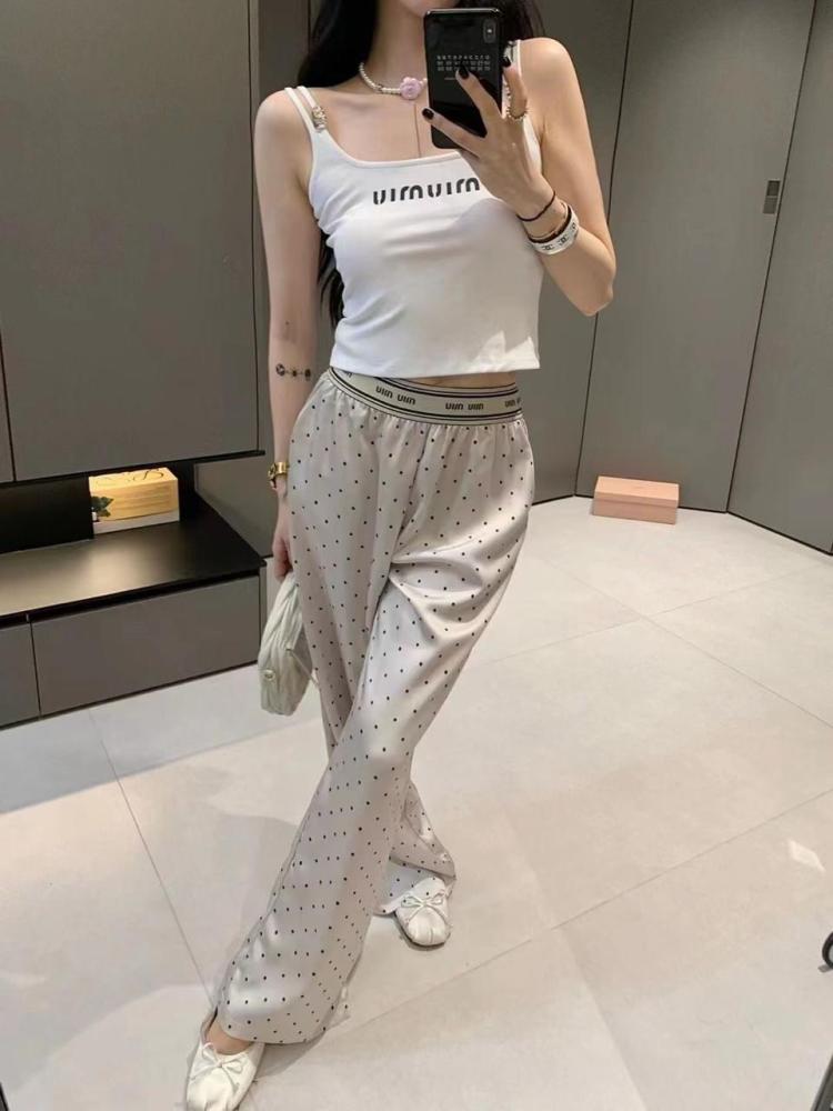 Discover elegance and comfort with Miu Miu women's wide-leg pants with an elastic waist from iSeven Store. Crafted from the finest fabrics to ensure all-day comfort, these pants feature a season-perfect white color and a polka dot print that adds a modern touch to your look. This unique style features an elastic waist and a cut that flatters your figure, providing a sense of freedom and ease of movement.