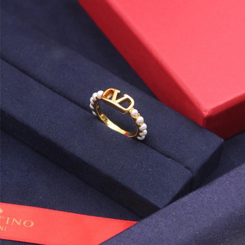 Valentino Pearl Ring in Gold with the Brand's Logo