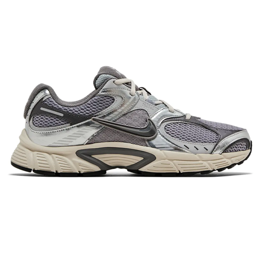 The Nike V5 RNR Mesh Shoes in dark grey and silver combine athletic performance with a distinctive, modern design.