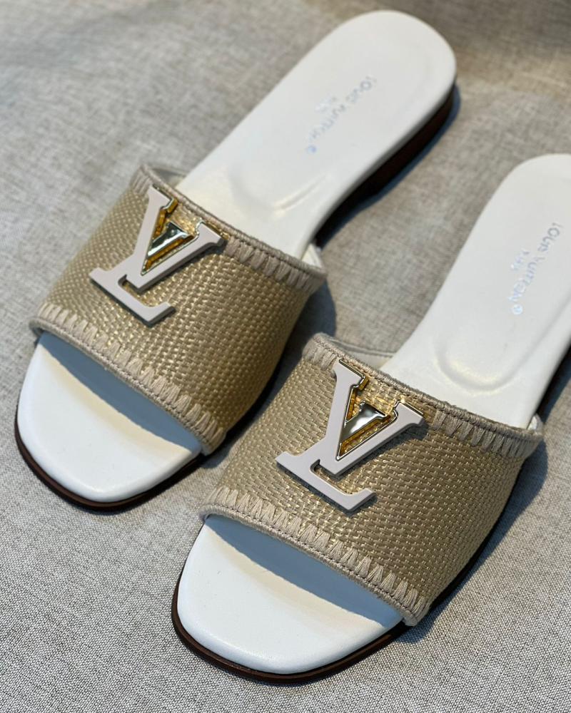 LV Louis Vuitton Women's Straw Slippers in White and Beige: A Luxurious and Elegant Summer Design