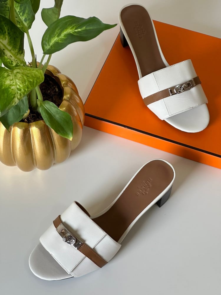 We now offer you a distinguished assortment of the best forms of women's shoes with all their different designs, provided by the best famous brands to ensure that you get excellent materials with an elegant and distinctive shape, and below we offer you a white Hermes slipper, one of the best shoes you can order and get now.