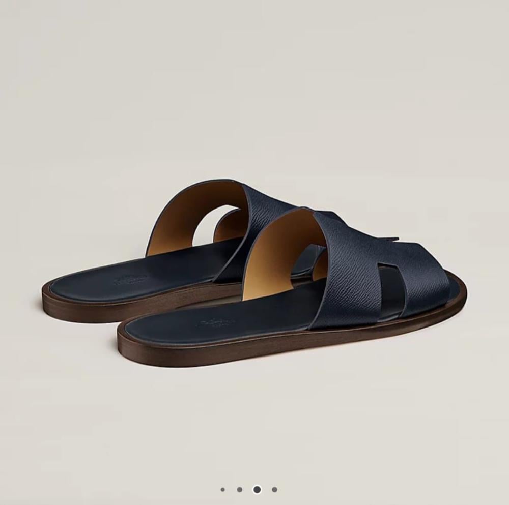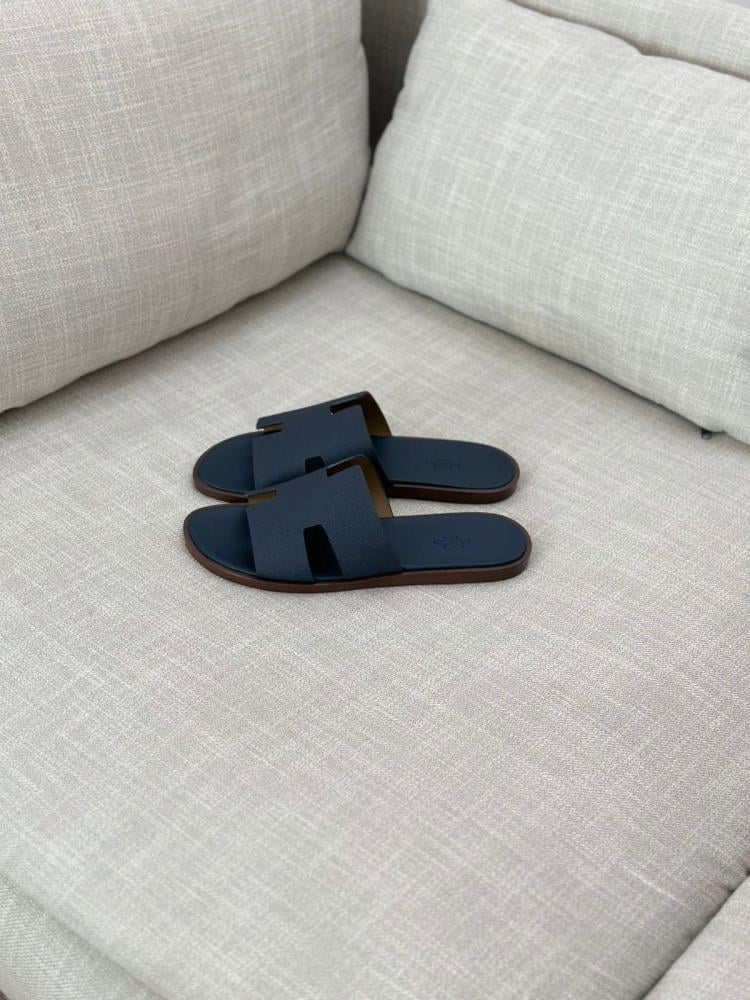 Discover the luxurious Hermes Izmir men's leather slipper in Night Blue, now available at eseven store!