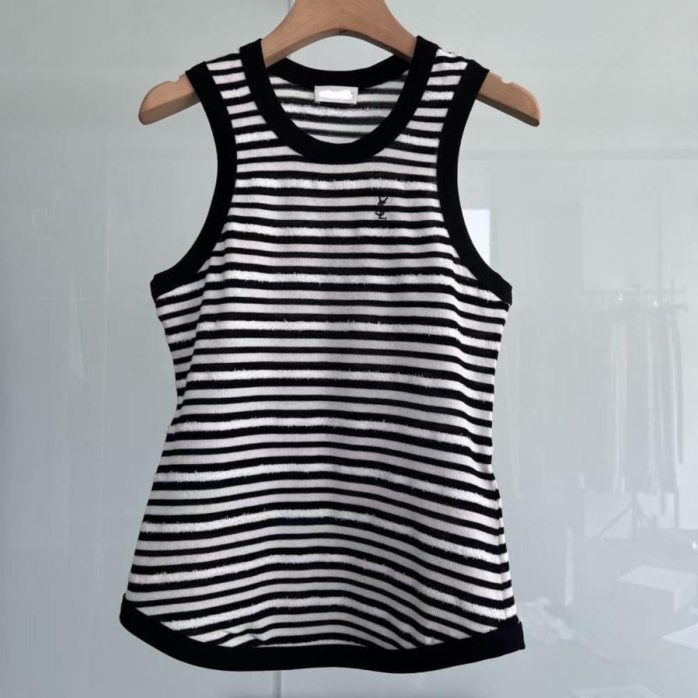 If you're wondering what to wear to look elegant but without the fuss, worry no more! Saint Laurent's black and white striped top is here to offer you a touch of elegance and simplicity that's perfect for any occasion and every style.